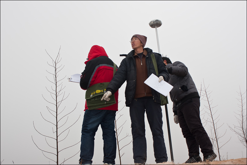 冬季出外業(yè)是測量人員最辛苦的時候。因為今年冬天邯鄲的天氣特別冷特別冷,而又趕上了連續(xù)的霧霾天氣,工作原因又不能帶口罩,全體測量人員克服一切困難,為確保征遷工作順利開展、下一步工作如期進行,測量人員從早到晚奔波在野外,很少能按時按點吃上飯,在匆匆吃點飯菜之后就又開始工作。他們不斷的總結(jié)經(jīng)驗,采用了新技術(shù),全力保證了征遷工作的順利開展。